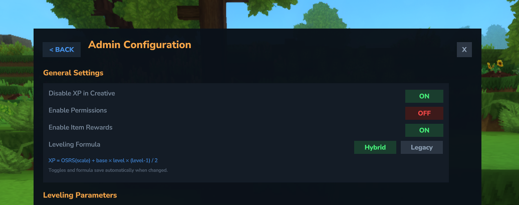 - Disable XP in Creative - Toggle whether creative mode players gain XP
