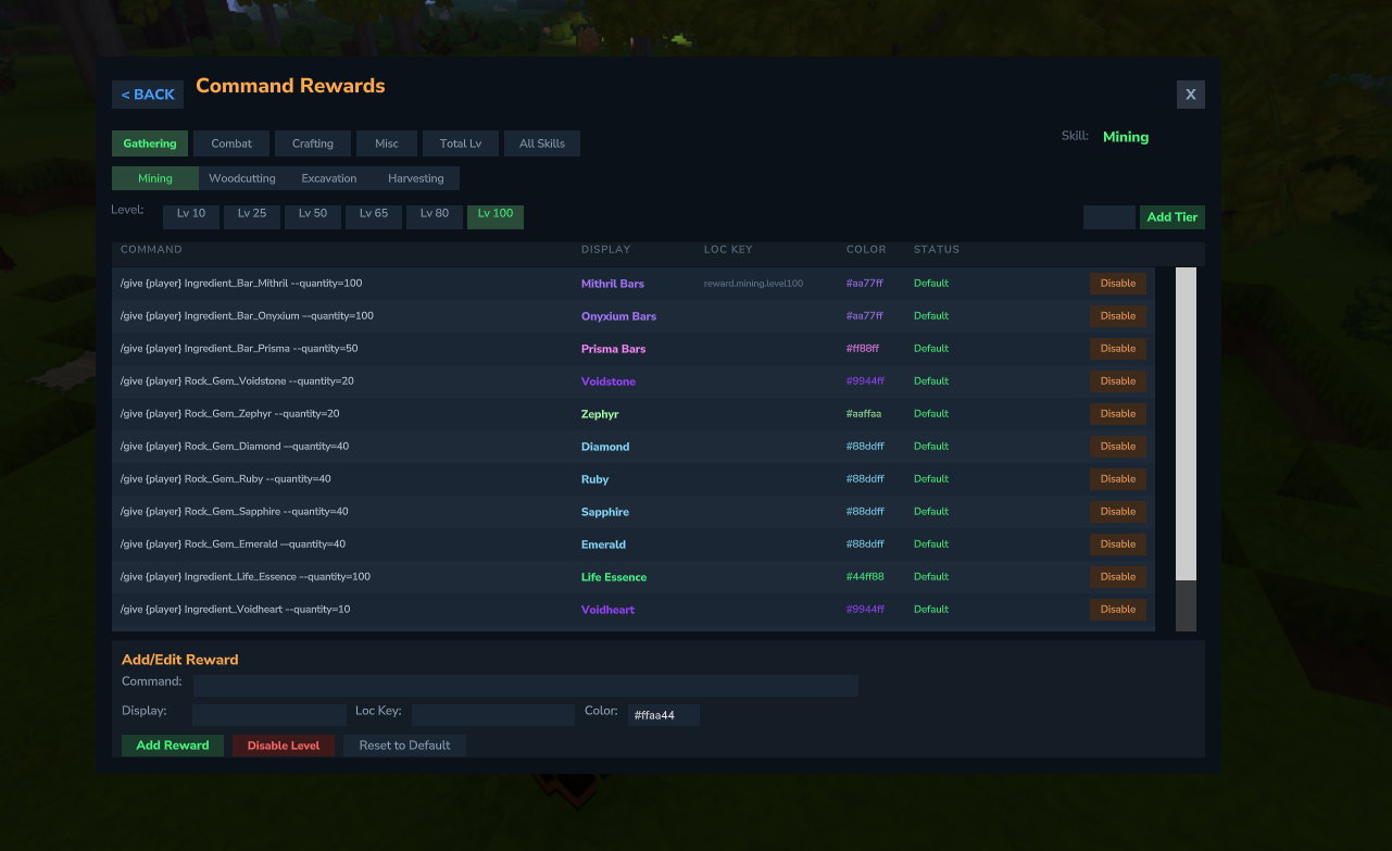[]to disable rewards at that level - New defaults added in mod updates propagate without losing your customizations